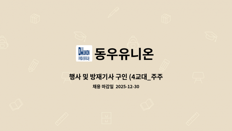담당업무 ▷ 시설물 유지보수 업무 ▷ 3교대 근무(주당비) 핵심역량 ▷ 성실성, 꼼꼼함, 협동심 자격요건 ▷ 학력 무관 ▷ 경력 : 동종업 유경험자 우대 우대사항 ▷ 유관업무 경험자 ▷ 인근거주자 ▷ 3교대 근무 가능자
