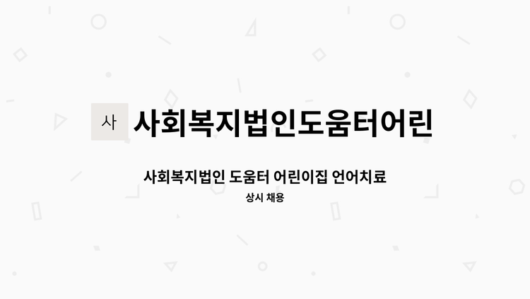 ○ 모집분야 : 치료사 1명 ○ 자격사항 : 언어치료 국가자격증소지자