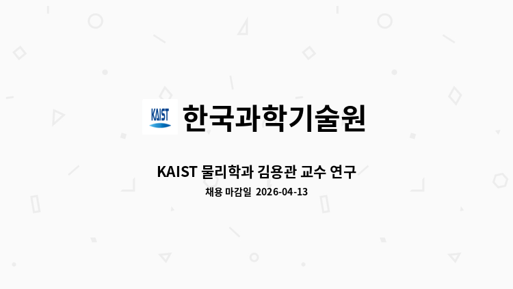 -연구 지원 업무(연구비, 사업비 집행 및 관리, 연구 장비 관리) -연구 행정 업무 및 기타 일반 행정 지원 업무 ※ 자세한 내용은 아래 링크 참조(공고문 확인 필수) https://www.kaist.ac.kr/site/kr/html/footer/0814.html?mode=V&no=ed804c035b8dfe4eaedd3102ded20514