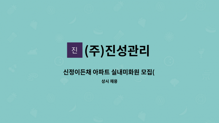 - 근무내용 : 아파트 보안,경비업무 / 단지내 입주민 안전유지 및 순찰활동 - 업무시간 : 06:00~ 익일 06:00 (24시간 격일근무) - 휴게시간 : 주간 5.5시간 ,야간 5.5시간 = 11.07시간 - 급 여 : 대원 월 2,067,830원 - 자격요건 : 일반경비원 신임교육 이수자