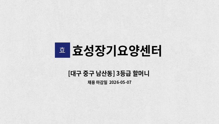 어르신 방문요양 요양보호사 병원동행, 청소, 빨래, 식사 차려드리기, 목욕 08:00~11:00 주 5회 *음식 잘하시는 분 우대 상담시간: 10:00~17:00 **담당연락처: 053-****-**** (*개인정보가 자동 블라인드 됩니다.)