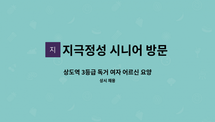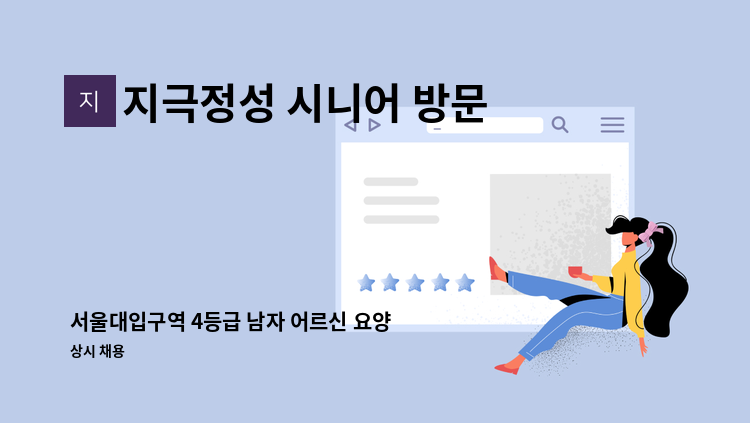 근무지 : 서울시 마포구 포은로 142, 마포구청역 근처 근무시간 : 월,수,금 13:00~16:00 (주3일) 주업무 : 식사, 청소, 이동도움, 병원동행