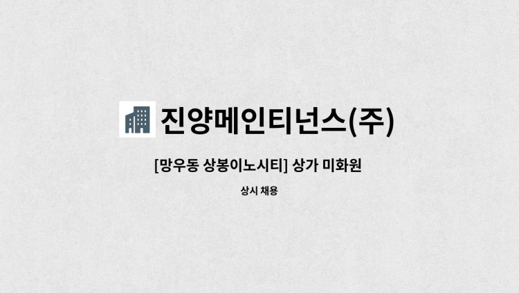 담당업무 ㆍ물류센터 전반적인 소방시설 유지,관리 자격요건 ㆍ소방안전관리자 1급 선임 필수 우대사항 ㆍ소방수첩 소지자 (1급) ㆍ인근 거주자 ㆍ즉시 출근 가능자 ㆍ장기 근무 가능자 ㆍ운전 가능자
