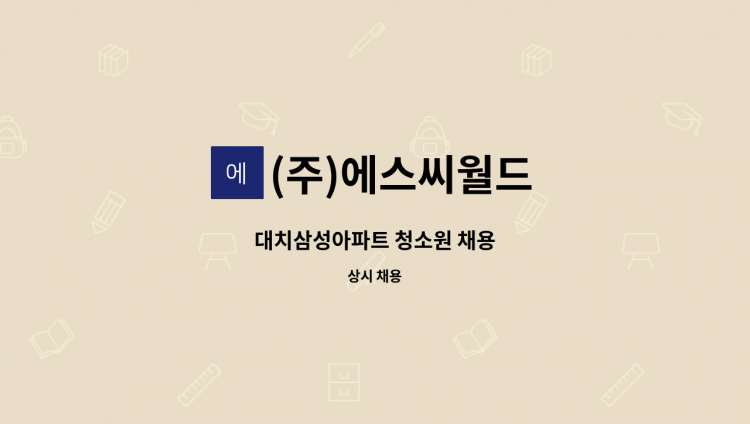 - 서희스타힐스1단지 아파트 내부 청소 - 근무시간 : 평일 8:00~15:00 (휴게시간 1시간) / 토요일 8:00~11:00 - 급여 : 1,630,590원 - 입사관련 문의사항은 미화반장님 010-****-**** (*개인정보가 자동 블라인드 됩니다.) 로 연락주세요