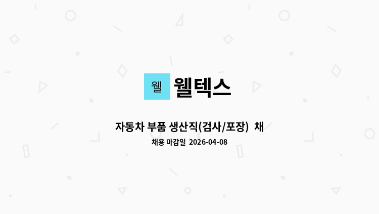당사는 자동차 및 전자부품을 생산하는 프레스 업체로 성실한 직원을 모집합니다. * 경력에 따른 시급 협의 가능