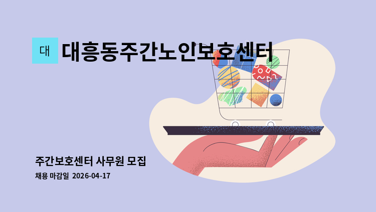 -책임감 강하고 친절 하신분 환영합니다. -어르신케어 및 송영업무 -필수사항: 요양보호사자격증, 운전면허증 -근무시간: 08:30~05:30(주5일 근무 / 공휴일,토요일에 근무할 경우 대체휴일 적용), 휴게시간 제공(1시간) -급여: 월201만원이상 -지원방법 : 이력서, 자기소개서 발송 1. 워크넷접수 3. 방문접수 : 주소- 대전광역시 중구 대흥로 144 , 1층