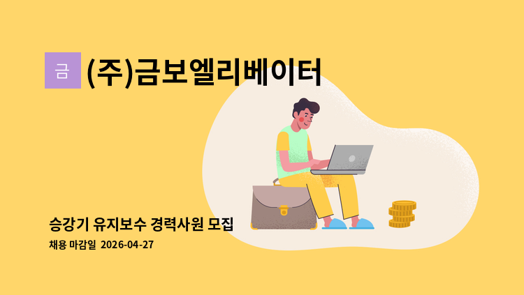 화물용 엘리베이터를 주력으로 생산 및 설치,유지보수 하는 업체입니다 주로 자회사 제품을 보수 보고있어 화물용 엘리베이터 유지보수가 가능하신분을 구인합니다 급여는 경력 및 능력에 따라 협의가 가능합니다. 운전면허는 필수 입니다. 법인차량 지원 가능합니다 수리비 및 유류비 회사에 영수증 제출시 현금지급 중식 식대- 법인카드 지급 혹은 영수증 제출시 현금지급(10000원 내외)
