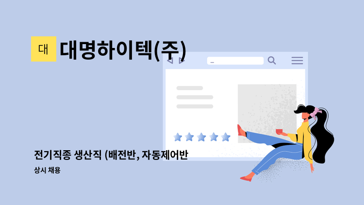 케이블(전선) 재단 및 케이블 납땜 작업을 합니다. 납땜은 경력자가 아니면 다소 어렵기 때문에 경력자가 좋을 것 같습니다. 사대보험 가입. 퇴직연금 가입. 하계 휴가. 휴게 공간 제공 등.