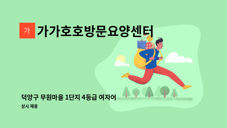[화정동] 옥빛마을 14단지 3등급 어머니 / 식사 도움, 약 복용, 가사 및 일상생활 도움 / 주5일(월~ 금), 13:30~16:30 / 시급: 12,100원 / 채용담당자(010-****-**** (*개인정보가 자동 블라인드 됩니다.)) 통화 후 면접 진행 ※ 실제 서비스 제공 기간에 따라 임금을 계산하여 지급하는 형태로 채용 시 근로자마다 주 소정 근로 시간이나 임금, 근무(예정)지 등에 차이가 있을 수 있음