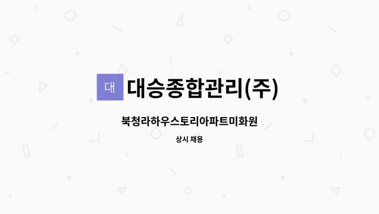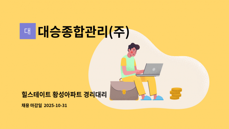 관리사: 대승종합관리 -용현엠코아파트: 171세대, 개별난방일근직채용 -근무: 08:30 - 17:30(월-금) -급여:2600000원, 검침수강 5만원 별도 -문의: 010-****-**** (*개인정보가 자동 블라인드 됩니다.)