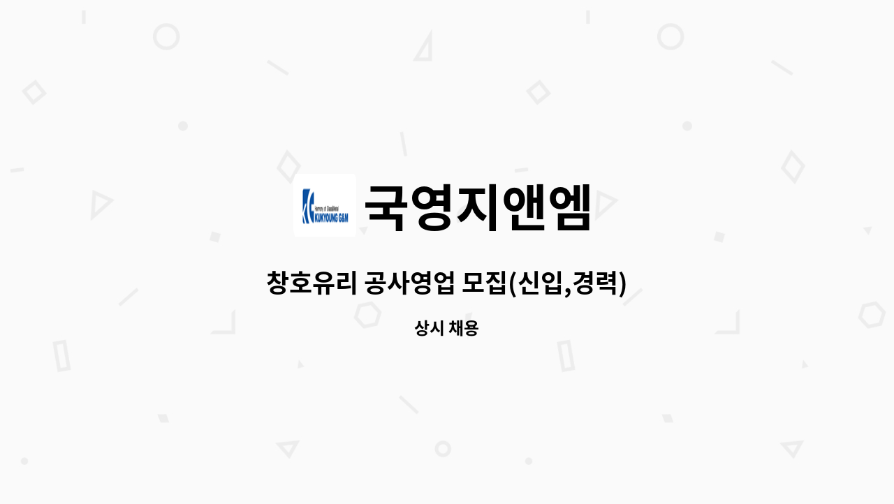 ☞ 공사영업(도면검토, 물량산출, 견적작업, 유리공사 입찰 및 수주 등) ☞ 임금 : 면접시 협의