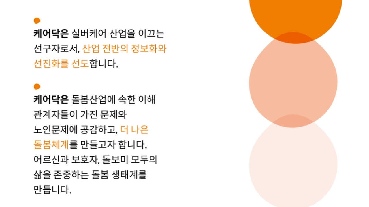 케어닥은 이름을 아는 분보다 모르는 분이 아직은 더 많으실 수 밖에 없는, 설립한 지 1년 6개월 남짓의 실버케어 회사입니다.