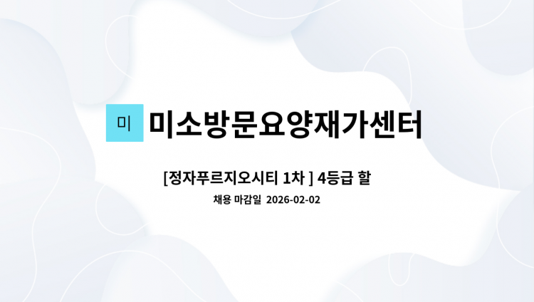 - 【정자동】 3등급 독거 여자어르신 돌봄 요양보호사 구인 ▶직무내용: 거동가능 식사,가사 지원, 일상생활지원 ▶ 근무시간: 주5일근무 오전 09:00~12:00 ▶ 시급: 12,300원 ▶ 근무장소: 분당구 정자동 2 푸르지오 시티 2차(정자역 도보 500M) ▶ 지원방법: 담당자 전화 통화후 면접