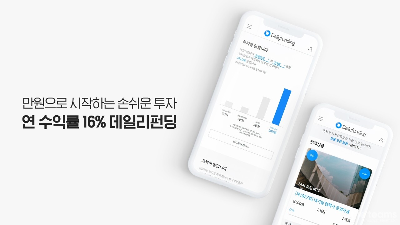 투명한 종합 핀테크 플랫폼 데일리펀딩, 투자자에겐 안정적인 수익을, 대출자에겐 부담을 낮춘 중금리 대출을 통해 새로운 '내일의 금융'을 말합니다.