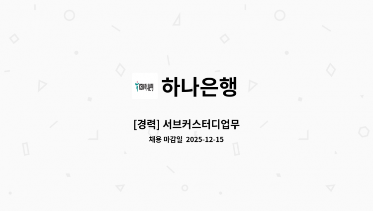 - 채용직군 : 하나은행 STM매니저 시급제 텔러