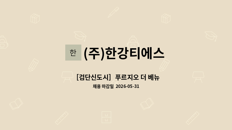 ▶ 석수아이파크 아파트 외곽 청소 ▶ 근무시간: 평일 09:00~15:00, 토요일 09:00~12:00 ▶ 급여: 월급 1,429,510원 ▶ 담당자 : 미화반장 010-****-**** (*개인정보가 자동 블라인드 됩니다.) (통화 후 지원)