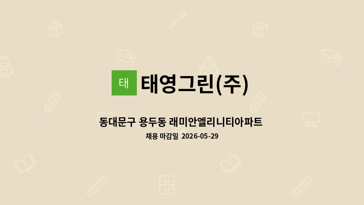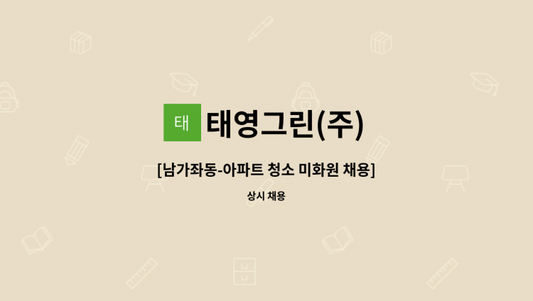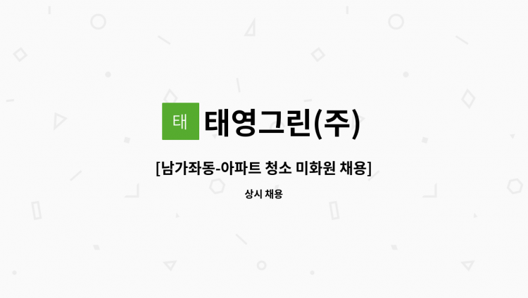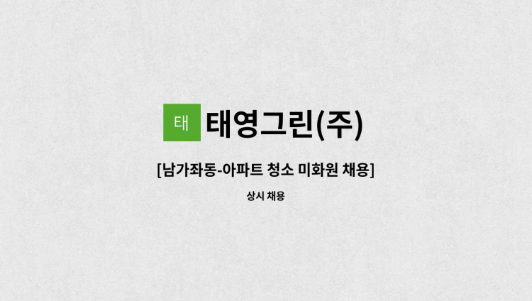 산성역 포레스티아아파트 스포츠센터 미화원 구인 - 월~금 : 14:30 ~ 22:00(휴게시간 1시간) 격주토 08:00 ~ 11:00 - 급여 : 1,755,650원