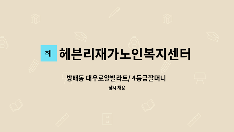 [답십리동 80대 4등급 여자어르신] ▶동대문구 답십리동 한화아파트(답십리역 인근) ▶가사 및 일상생활지원, 병원동행 ▶(월~금)09:00~12:00 ▶시급 12,200원