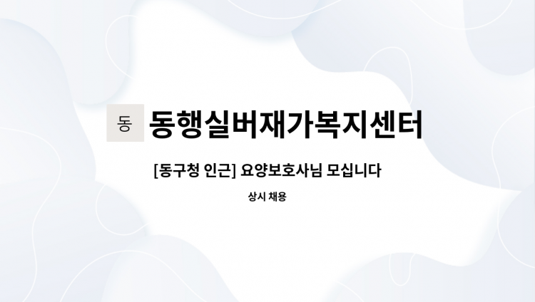 - 주요 업무 : 어르신 투석 후 귀가 도움, 식사도움[근무시간 및 형태]