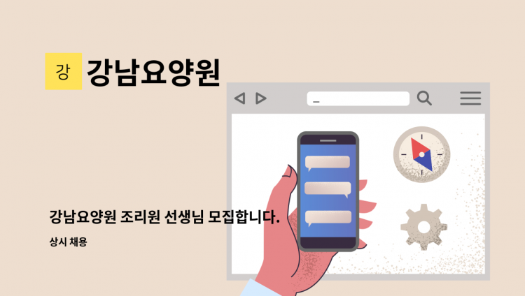 강남요양원에서 함께 할 물리치료사 선생님을 구인합니다. 주 5일 근무 점심식사 제공 (일정금액 급여 공제) 4대보험 가입 퇴직금 적립