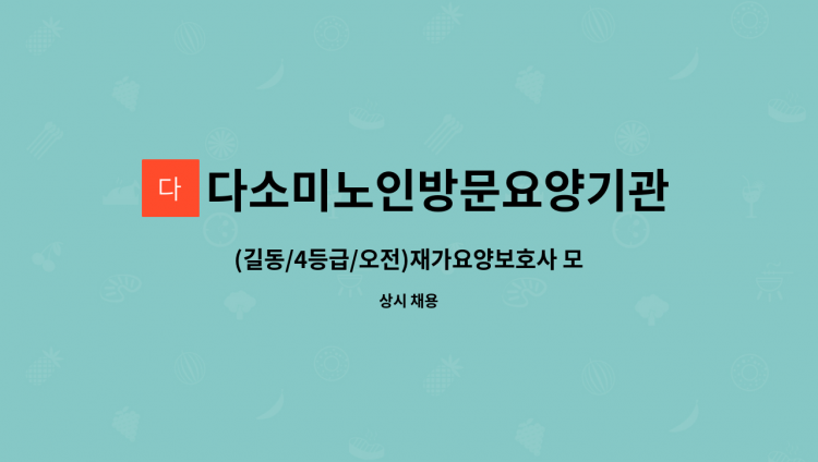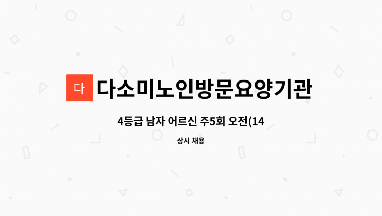 * 요양보호사 구인 (산본 9단지 금강아파트) - 3등급 80대 초반 여자 어르신(부부거주) - 주5일 9~12시
