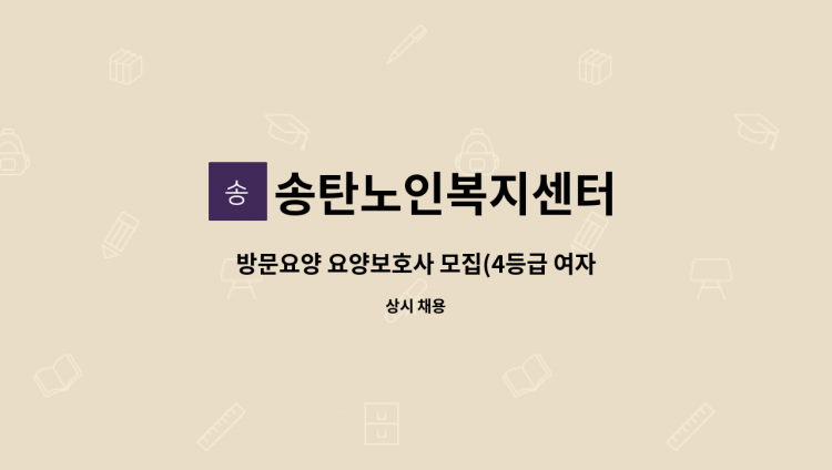 재가기관 방문요양 서비스 요양보호사 모집 3등급어르신, 월~금 13:00~16:00 신체활동지원, 정서지원, 가사 및 일상생활지원