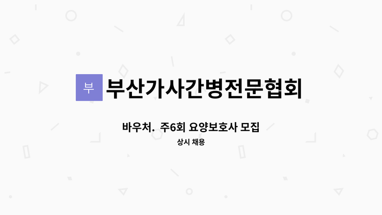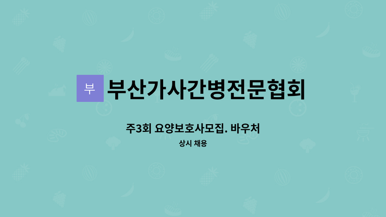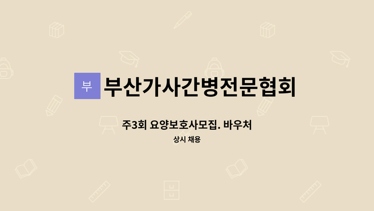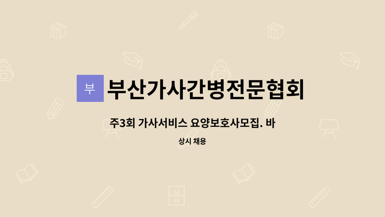 요양보호사 모집합니다. 근무장소 : 대상자 댁(60년생 남성) 요일 : 주3일 3시간 시간 : 조율가능 바우처 입니다. 등급 없습니다. 가사서비스 원함