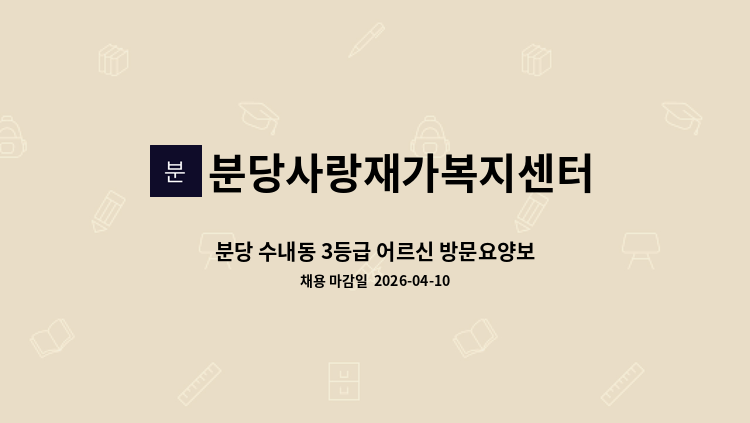◆ 직무내용 : 어르신 위주로 케어함(가사생활지원, 산책도움, 말벗)