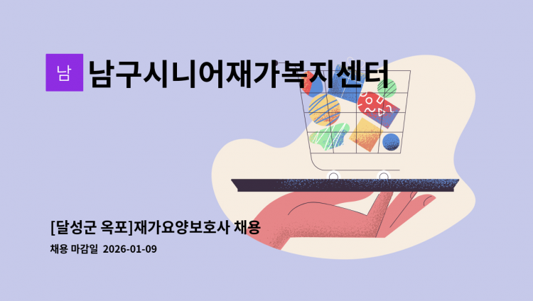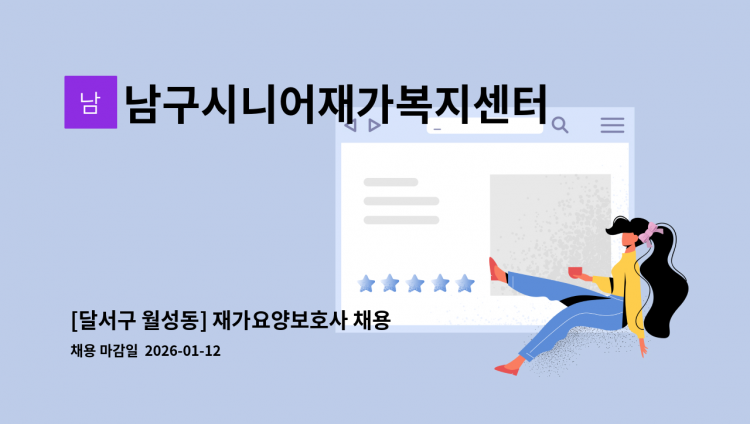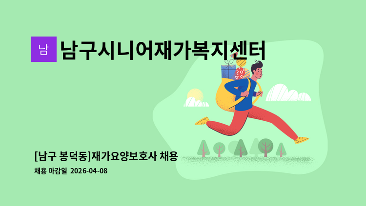 - 대상자 : 4등급 할아버지 - 직무내용 : 어르신 케어 및 일상생활케어 등 - 근무시간 : 14시~ 17시 (주6일) - 급여 : 시급 12,500원