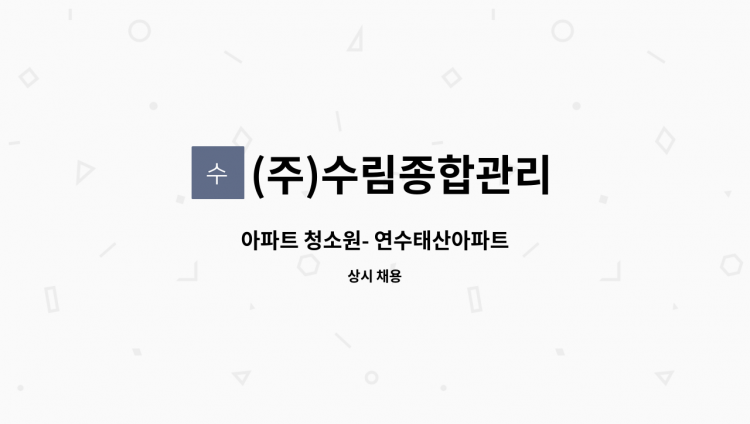 아파트 공용부 청소 평일 09:00~15:30, (휴게시간 12:00~13:00) 토요일 09:00~12:00