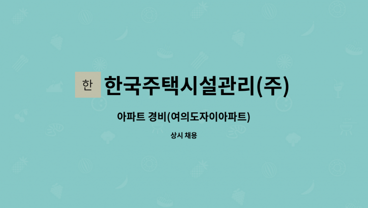 -용산파크자이 오피스텔 -근무포스트 : 로비 안내데스크 1곳 근무 (2인 1개조) -지상 36층 -세대수 : 995실 48점포 -관리형태 : 위탁관리(한국주택시설관리) -근무형태 : 24시간 격일제(휴게시간 : 주간 6시간, 야간 4시간) -급여 : 2,510,000원 -지원 : 010-****-**** (*개인정보가 자동 블라인드 됩니다.) -이메일 : 00****2600 (*개인정보가 자동 블라인드 됩니다.)@yesvill.com