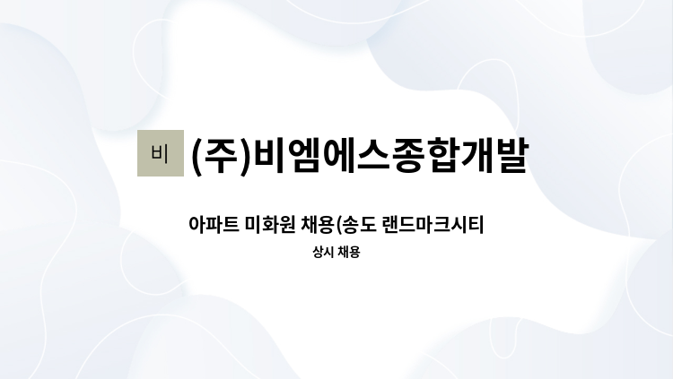 - 청라호반베르디움 내부 미화원 채용 - 급여 : 1,670,980원 - 평일 09:00~16:00 토요일 09:00~12:00