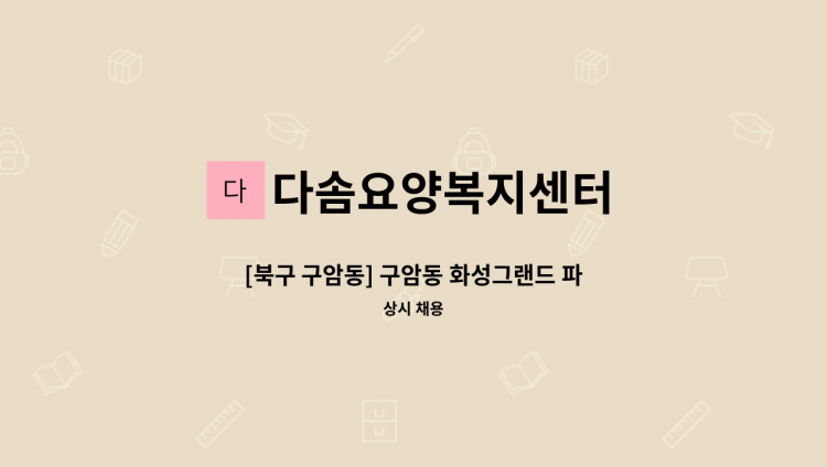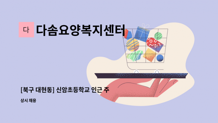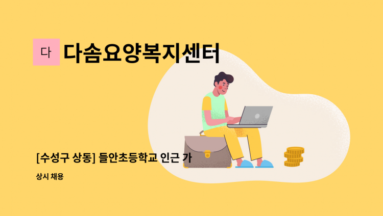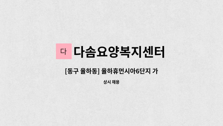 [수성구 만촌동] 메트로팔레스2단지 - 직종 : 재가요양보호사 - 직무 : 4등급할아버지 어르신케어 및 일상생활 서비스지원 등 - 근무시간 : (주3일) 오전 09:00~12:00 - 급 여 : 시급 12,500원