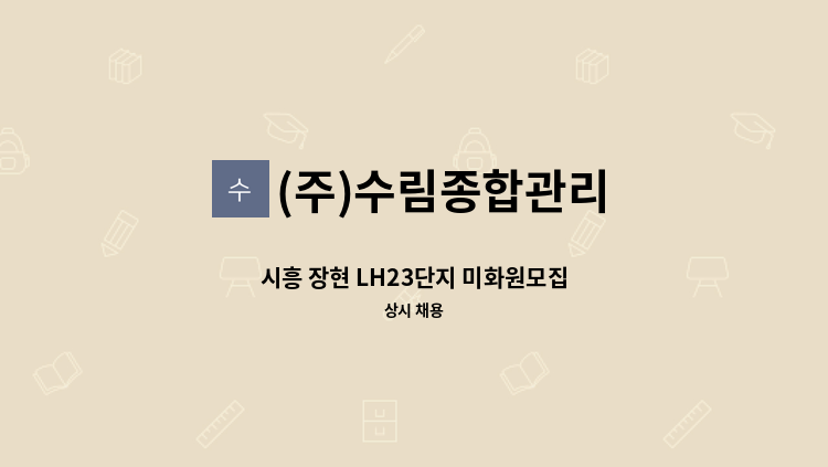 아파트 공용부 청소 평일 9시~ 16시 (휴게시간 1.5시간) 토요일 9시~12시