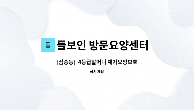 ***[식사동] 재가요양보호사 채용 /3등급 할머니 /어르신 케어 /주3일 09:30~12:30 /채용담당자 유선문의 ****실제 서비스 제공 기간에 따라 임금을 계산하여 지급하는 형태로 채용시 근로자마다 주소정근로시간이나 임금, 근무(예정)지등에 따라 차이가 있을 수 있음