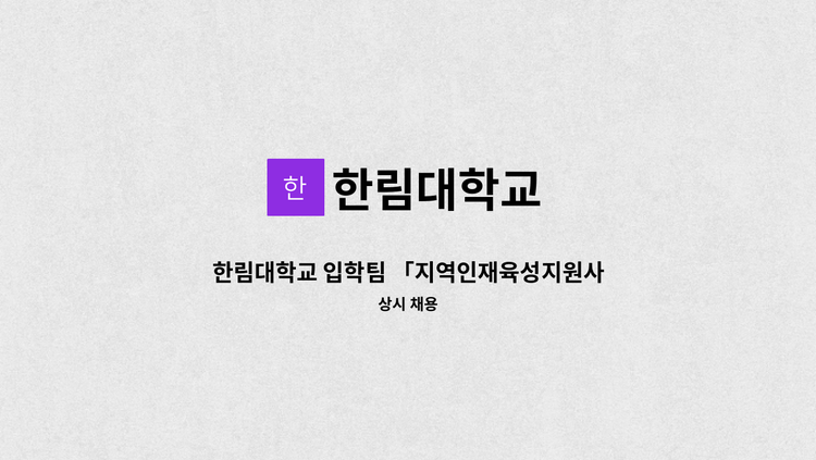 ■ 채용분야: 행정 가. 채용형태: 계약직 (00명) 니. 채용분야: 행정 다. 근 무 지: 한림대학교 라. 담당업무: 글로컬대학 사업운영 전담 업무 등 마. 직무평가 등을 고려하여 사업종료시까지 사업 차년도 단위로 재계약 가능 (총 사업기간: 2023. 12. 1. ~ 2028. 2. 29.) 바. 계약만료 후에는 근로계약은 자동 종료됨 사. 계약기간 중 사업이 종료되면 종료일까지를 계약기간으로 함. ■ 지원 자격 가. 전문학사 이상(전공무관) 나. 국가공무원법 제33조의 결격사유에 해당하지 않는 자 다. 아동․청소년의 성보호에 관한 법률의 취업제한에 해당하지 않는 자 라. 남자는 병역필 또는 면제자 ■ 근무조건 가. 근무 시간: 주 5일(월~금) 08:30~17:30 / 휴게시간: 12:00~13:00 나. 근무 기간: 채용일로부터 1년 계약. 다. 급여(월): 2,080,600원 ~ ※ 급여는 내부기준 및 경력에 따라 입사 시 산정 예정. 라. 기타 근무조건: 4대 보험 가입, 퇴직금 지급, 연장․휴일․야간 근로 시 시간외수당 별도 지급. ■ 채용일정(사정에 따라 변경될 수 있음) 가. 공고: 본교 홈페이지 및 워크넷 나. 지원접수: 상시접수 다. 지원방법: 메일 접수([email protected]) ※ 별도(첨부)양식의 이력서 및 개인정보 동의서 작성 후 메일제출. *본교 홈페이지 채용 공고 확인 (https://www.hallym.ac.kr/hallym_univ/sub05/cP3/sCP2.html?action=read&nttId=16326455&pageIndex=1) 라. 서류 심사 및 면접: 4월 또는 5월 중(예정) 마. 채용일: 4월 또는 5월 중(예정) ※ 서류심사 및 면접 등은 접수현황에 따라 수시로 진행될 수 있음.