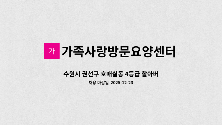 4등급 할머님 어르신(85세) - 신체활동,정서지원,일상가사지원 등 - 일3시간*월24회 월한도내 사용 희망(주5일 또는 주6일) - 경기남부경찰서 근처 아파트