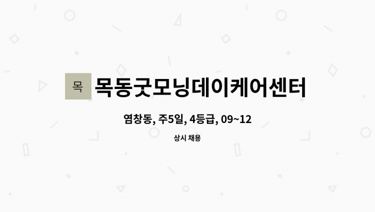 - 요양보호 대상자: 4등급 할머니 - 직무내용: 일상생활 지원, 가사지원 - 근무시간: 14:00~17:00, 주5일 - 급여: 시급 12,440원