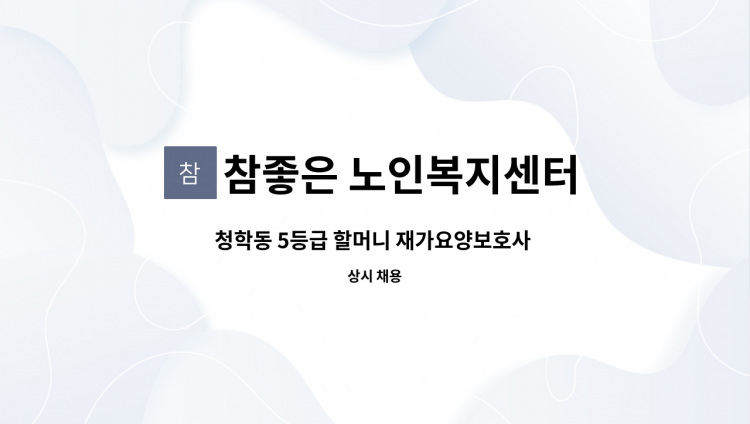 [연수동] 재가요양보호사 모집 -대상자: 4등급 여자 어르신 케어 -근무시간: 주5일 3시간, 09:00-1200 -근무지: 연수구 청학동 시대 -기타: 할아버지동거 할머니만 케어 -시급:12,500원