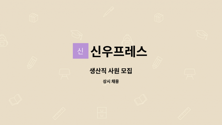 성경책을 인쇄, 제본하여 수출하는 회사입니다. 제책사업부에서 제본작업에 종사하실분을 모집합니다. 성경책 제본과정 중에 일하는 단순생산직부터 제본기계를 조작하는 일까지 초보자, 경력자 상관없습니다. 중장년 지원 가능, 남/여 무관 지원 가능