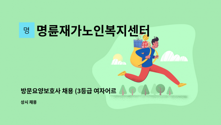 ○ 직무내용: 1등급 여자어르신 방문요양 서비스 (기저귀 케어, 개인위생 관리, 식사지원) ○ 근무형태: 주 5일(주 20시간), 09:00~13:00 ○ 근무장소: 원주시 버들만이길 (반곡동), 하모니마트 반곡점 인근 *대상자 자택