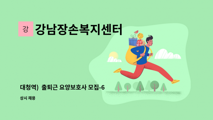 근무시간: 주5일 3시간씩 ( 오전 9시~12시 or 오후 1시~4시 시간협의) 주요업무: 방문요양(돌봄SOS, 가사간병, 방문목욕), 업무보조 채용방법: 서류, 면접, 수습 급여: 80만원 준비서류: 이력서, 자기소개서, 요양보호사자격증 제출방법: [email protected]