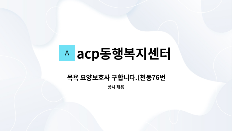 - 3등급 할아버지. 90세. 낮 시간에 혼자 계심. - 오전10시~13시까지 주 5 일 - 시급 12,800원 - 목욕 없음, 조리는 거의 안 할 것 같으나 혹시나 가끔은 요청할 수도 있음. - 방, 화장실 청소 - 위치 특성상 차량 있는 분 가능. 정류장에서 거리가 있음. -센터장에게 문의 주세요 010-****-**** (*개인정보가 자동 블라인드 됩니다.)