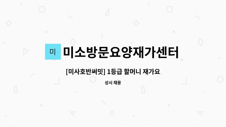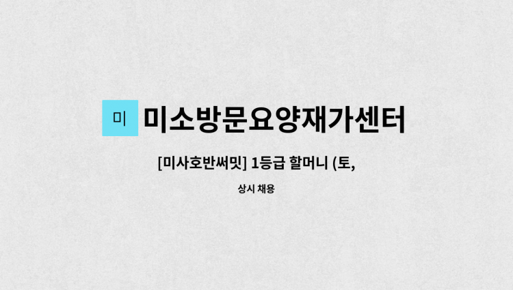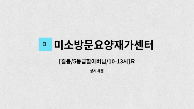 - 창우아파트 3등급 남자어르신 - 근무시간: 주5일 /10:00~13:00 - 시급: 11,050원 - 휠체어 산책, 주2회 샤워 도움