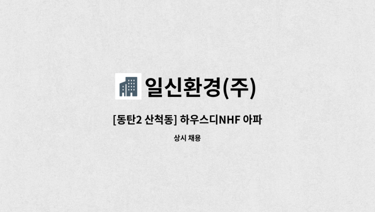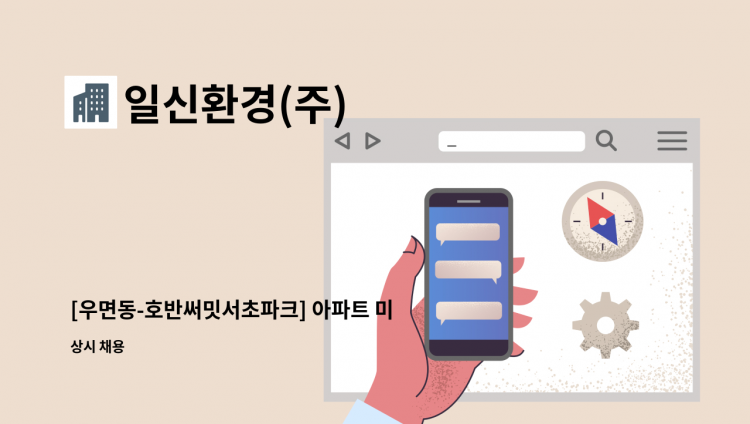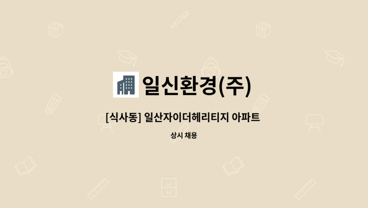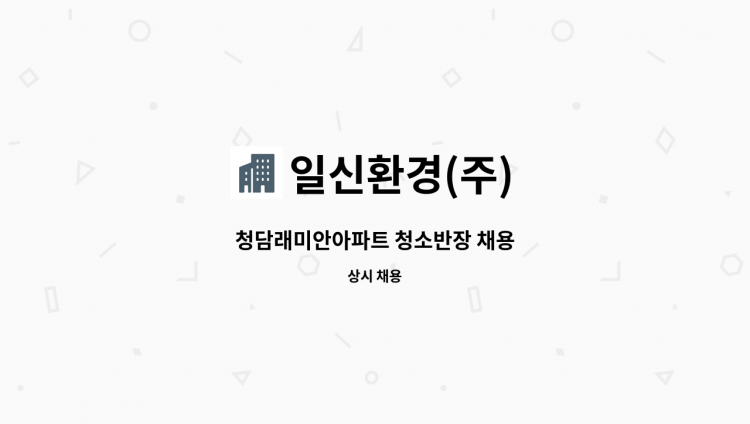 - 아파트 실내 미화 업무 - 주5일 / 평일 09:00~15:30(휴게 1시간) /(주 근로시간 26.5시간) - 월 1,413,860원