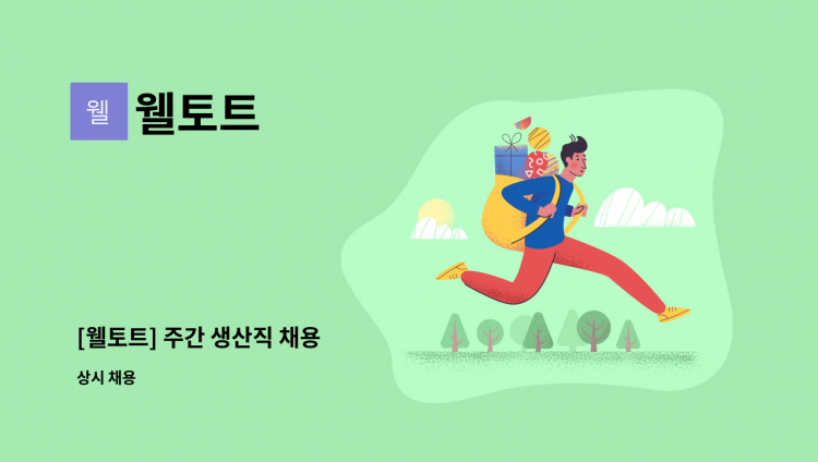 [ 웰토트 사무직 채용공고 ] - 직무내용: 부대표님 보좌업무- 운전, 기술마케팅 보좌, 국내외 전시회 관련업무 등 - 임 금: 월급 230만원 (수습기간 1개월 적용시 임금) / 수습기간 이후 경력이나 능력에 따라 차등 적용 - 근무시간: 주5일 09:00~18:00 - 필수조건: 운전 가능자 - 복리후생: 차량유지비 10만원 지급 / 1식 제공 / 직원대출제도 / 체력단련비 - 근무장소: 충북 청주시 청원구 내수1길 62