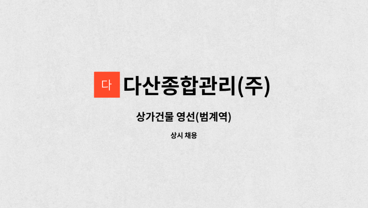- 빌딩 관리 업무 (범계역 부근 상가) - 경력2년 이상 - 문서작업 가능자(워드,엑셀) - 시설관리 (면접관련안내) 면접진행 : 본사 다산종합관리(주) 본사주소 : 경기도 의왕시 계원대학로6,104호(내손동,엘지프라자)