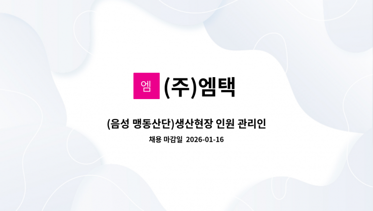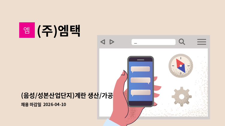<생란 생산/가공 생산라인 직원모집> 1. 업무내용 : 계란가공/세척업무 2. 근무지 : 경기도 안성시 죽산면(장원일반산업단지 내 / 음성 광혜원, 삼성면 근접) 3. 근무일 및 근무시간 - 근무일 : 월요일~금요일(주5일 근무) - 근무시간 : 08시 30분 ~ 17시 45분(기본근무시간) 4. 급여 조건 - 여 기본급 2,184,050원(시급 10,450원) 남 기본급 2,225,850원(시급 10,650원) - 잔업/특근 있음(잔업/특근 시 추가 근무수당 지급 ~ 3,100,000원) - 퇴직금별도 지급, 연차휴가사용권장, 4대보험 가입, 유니폼 지급 5. 식사 : 점심식사 제공, 잔업시 저녁식사 제공 6. 출/퇴근 셔틀버스운행 7. 복리후생 - 명절선물지급, 생일자 상품권 지급, 정기회식비 지원, 콘도이용권, 우수사원 포상 8. 지원자격 - 남/녀 가능, 연령무관, 외국인 가능(해당 비자 소지자) - 보건증 필수 - 장기근무가능자, 자차 가능자 우대