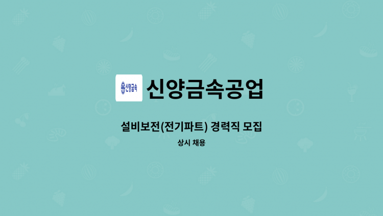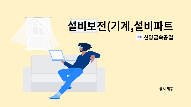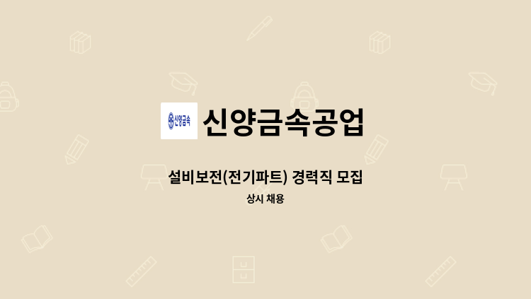 * 전기 / 냉동 관련 자격증 * 유공압 실무 및 기계 조립 및 분해 경력자 * 용접 가능자 * 압출 제조업 기계 설비(공무) 경력자 * 즉시 출근 가능자 * 인근 거주자