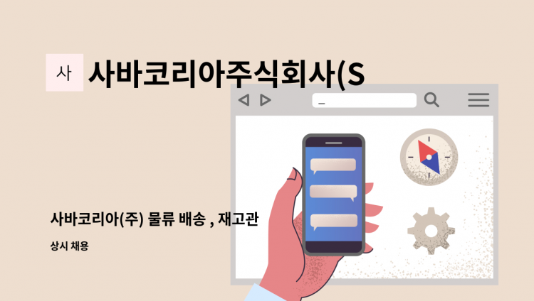 안녕하세요. 사바코리아(주)입니다. 자전거, 전기자전거, 전기스쿠터, 자전거 부품 수입업체입니다. 긍정적이고 적극적인 마인드를 가지신 분이라면 지원해주시기 바랍니다. 업무 - 전기 자전거, 스쿠터 인증 및 개발 담당 우대사항 - 신체 건강하신 분,자전거를 타고 즐기시는 분, 장기근무가능자, 1종보통운전가능, 지게차운전가능(지게차 자주 이용합니다.)
